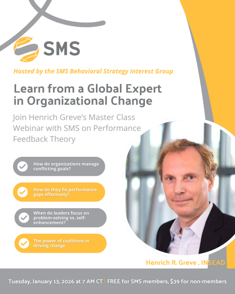 This session will first briefly cover the basic elements of performance feedback theory and some recent reviews of its empirical research. Next, it will discuss recent developments that form active research streams with new theory development and new empirical tests. To organize this discussion, the main parts will be discussions of recent research addressing currently unsolved big questions. These are: 1) How do organizations make decisions when trying to meet multiple goals that may be in conflict? 2) How do organizations direct change efforts so that the performance shortfall is solved? 3) When will managers engage in self enhancement versus problem solving? 4) What is the role of dominant coalitions in choosing when and how to change? Other topics may be added for completeness or in response to questions.