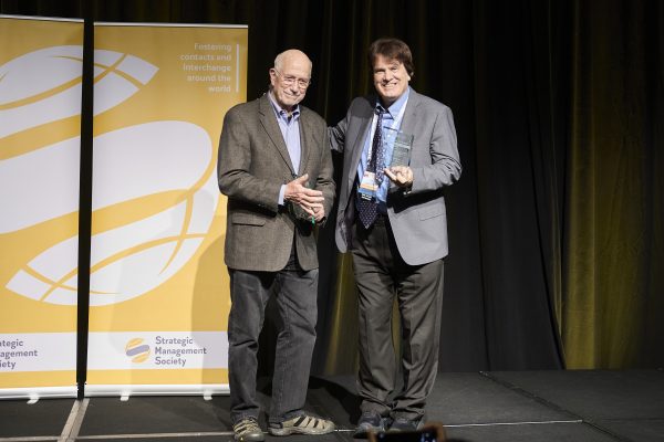 Awards and Honors were announced and celebrated throughout the event. The conference opened with a toast to SMS Award and journal prize winners during the Welcome Reception, and Conference Paper Prize recipients were recognized by the Program Chairs at the first Plenary Session on Sunday. This year’s SMS Annual Conference Best Paper Prize was awarded to “Arbitrage or Decoupling: Firms’ Opportunistic Responses to Regulation” by Lingling Xie, Heli Wang, Jiayi Hou, and Xuan Wang. Learn more about this year’s honorees on the Awards & Honors page.